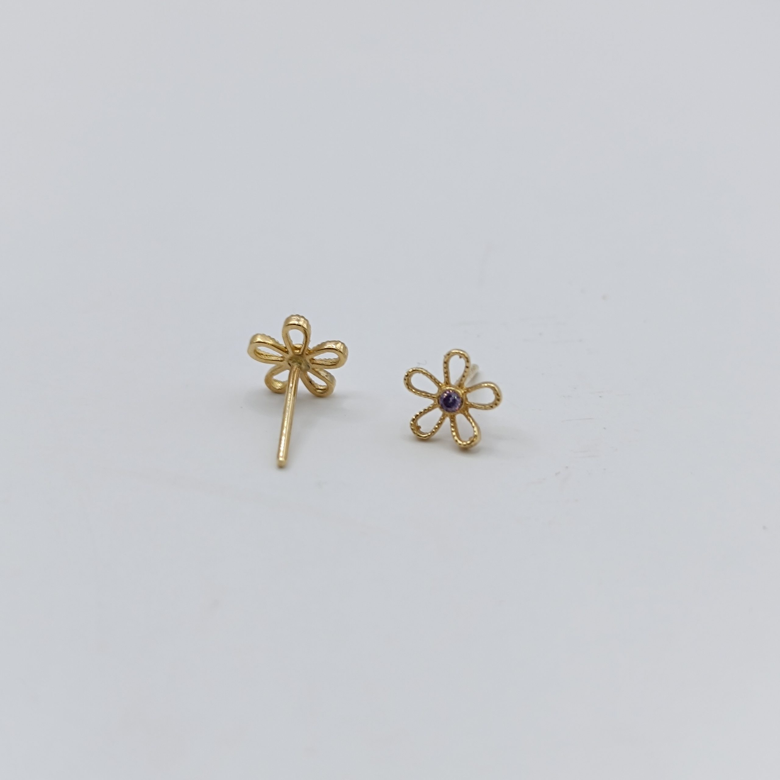 گوشواره میخی گل نگین بنفش